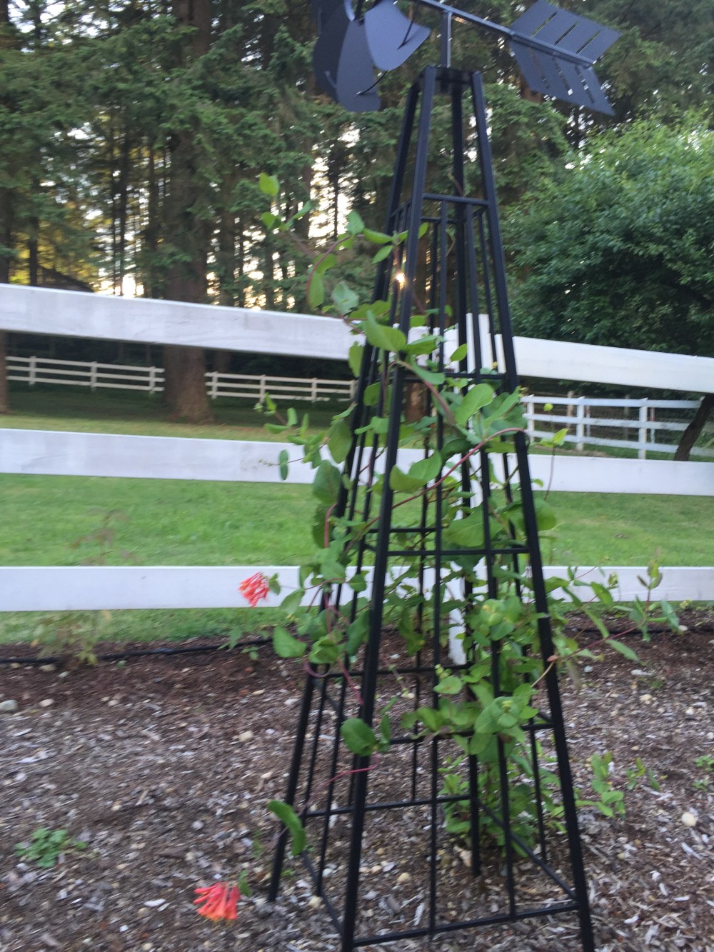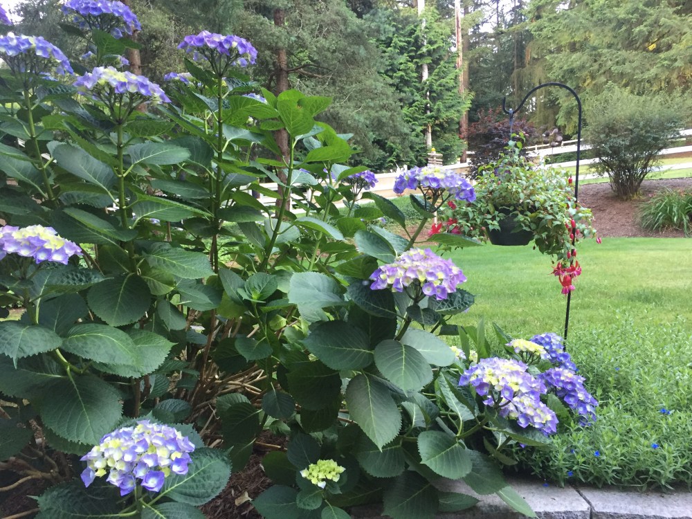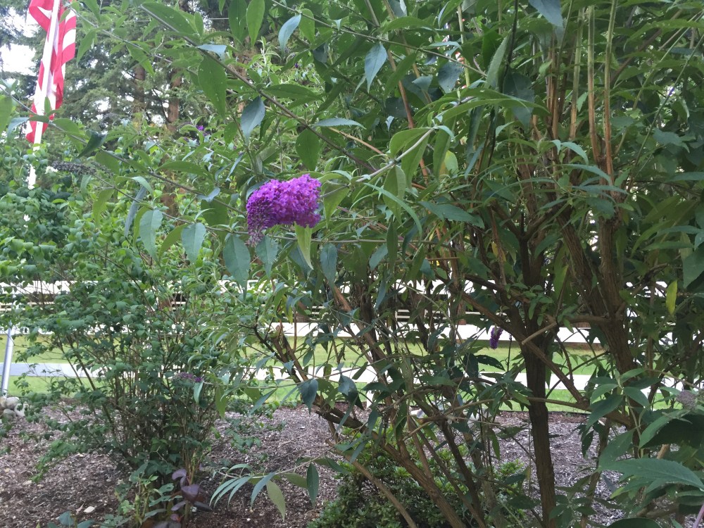 We now have blooms from our old butterfly bush …. Honeysuckle (new variety for me, as these are not the same ones as I remember from Maryland)… & Hydrangea