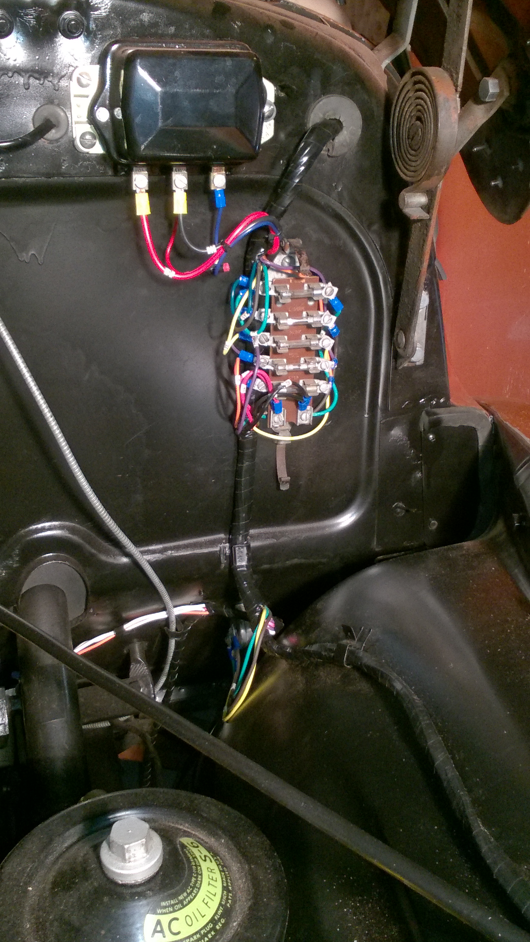 My beautiful wife purchased for me a new wiring harness from Classic Parts. It was very reasonably priced, I thought, at $150. As you may be able to see, the wires are each labeled with numbers, so the exercise was basically a “wire by number”. There were a couple things I was briefly puzzled about, but overall it was pretty easy to install. It took about 2 days to do the entire job, the worst of which was working up under the dash.