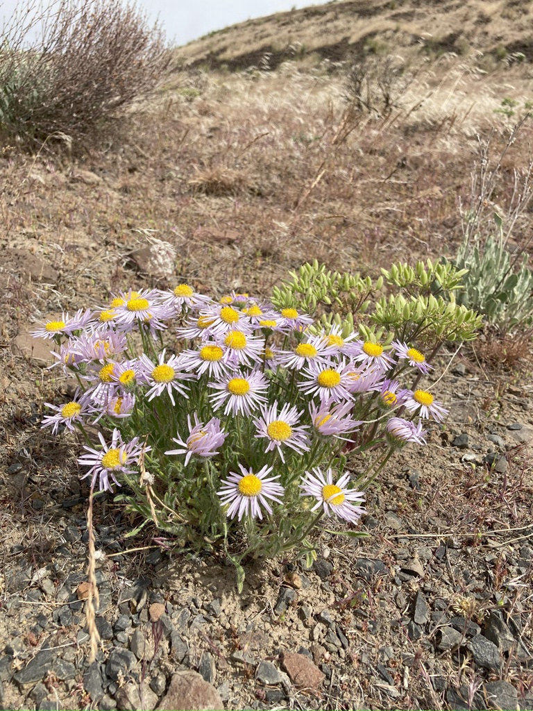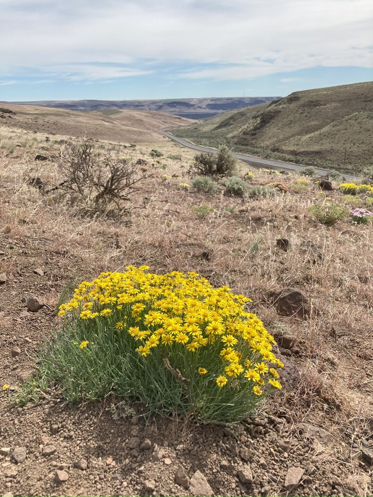 Here are a few springtime photos from Vantage, Washington, capturing the rolling hills of the shrubsteppe landscape, stretching beneath open skies. The images include views of the Columbia River which winds through the terrain, alongside native wildflowers such as carpet phlox (Phlox hoodii), Douglas’ dustymaiden (Chaenactis douglasii), sulphurflower buckwheat (Eriogonum umbellatum), Mojave aster (Xylorhiza tortifolia), and narrowleaf goldenbush (Ericameria linearifolia), all of which are native to the region and thrive in the arid conditions of central Washington. Grasses add texture and movement to the scenery, highlighting the resilience of life in this dry environment. Nearby, the Ginkgo Petrified Forest State Park offers a glimpse into the area’s ancient past, when old growth forests once covered this land before dramatic shifts in climate and geology shaped the shrubsteppe we see today.