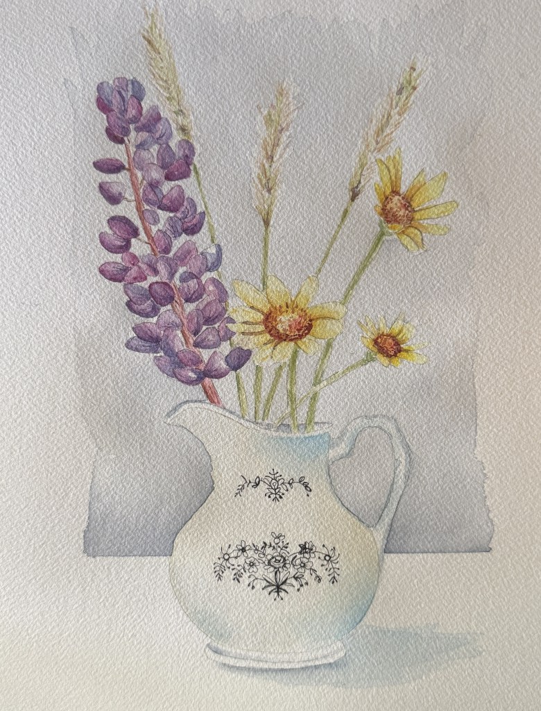 Smith, I. (2025). Washington Shrubsteppe Bouquet in Pitcher [photograph of painting]. Shared with permission.