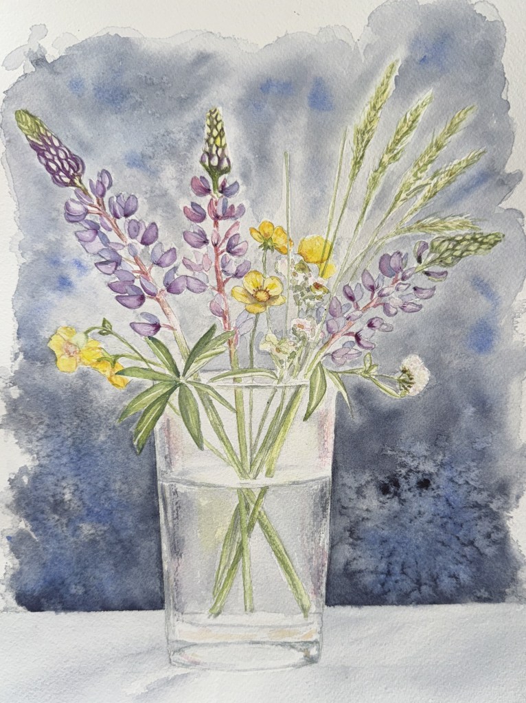 Smith, I. (2025). Washington Shrubsteppe Bouquet in Glass [photograph of painting]. Shared with permission.